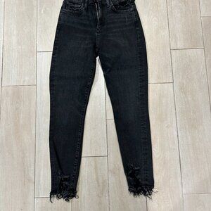 Womens AGOLDE Sophie A018 C-844 Black Distressed Crop Skinny Jeans Chewed Hem 27