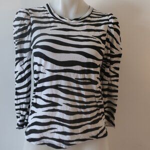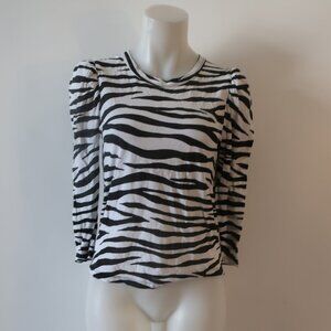 Womens A.L.C. Karlie Black White Zebra Print Puff Sleeve T-Shirt Top XS