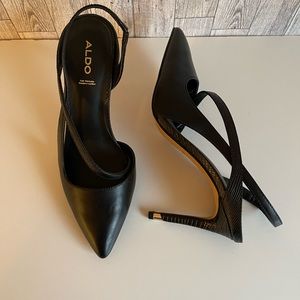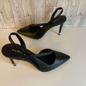 Women's ALDO Genuine Leather BLACK Stiletto Slingbacks