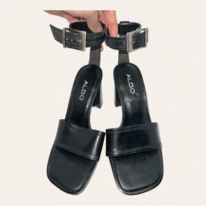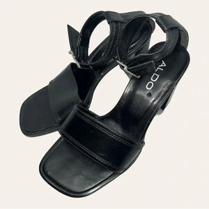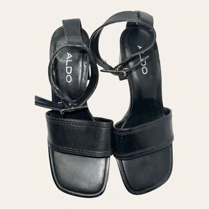 Women’s ALDO SQUARE‎ HEEL OPEN TOES HEELS SIZE 36(US 6) BLACK IN COLOR STRAPPY