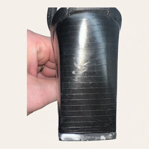 CONDITION: PREOWNED IN GOOD CONDITION THERE ARE SOME SCRAPES ON THE HEELS LEFT SHOES HAS SCRAPS ON THE MATERIAL PART RIGHT BE THE OUTSIDE OF HEEL AND THE RIGHT HAS A SCRAPE ON INSIDE OF MATERIAL