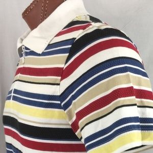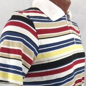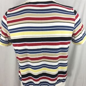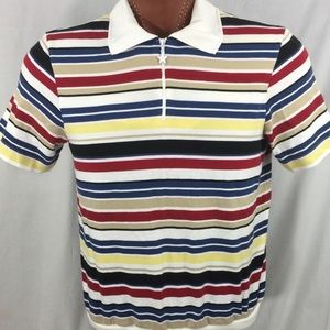 Women's ALFRED DUNNER Padded Shoulders Striped Short Sleeve 1/4 Zip Sweater Polo Medium