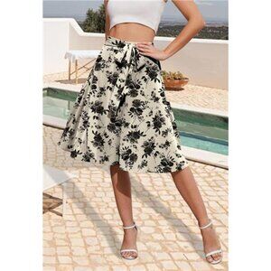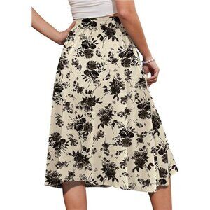 Women's A-Line Midi Skirt with Pockets High Waist Beige Black