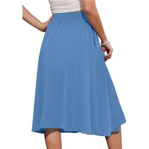 Women's A-Line Midi Skirt with Pockets High Waist Blue
