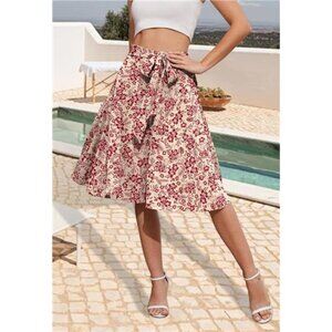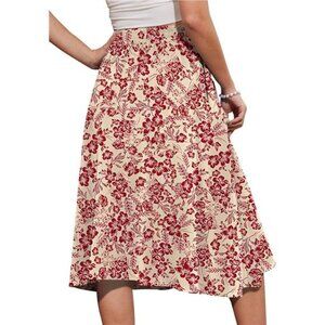 Women's A-Line Midi Skirt with Pockets High Waist Floral