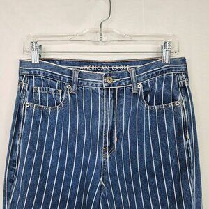 Women's AMERICAN EAGLE Mom Jeans Retro MEDIUM BLUE Pin Stripe size 4 High Rise