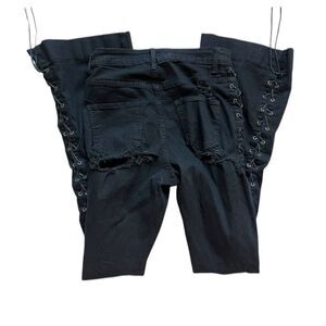 Womens AP Blue by Aphrodite Jeans Distressed Flare Leg Lace Up Jeans Sz 11