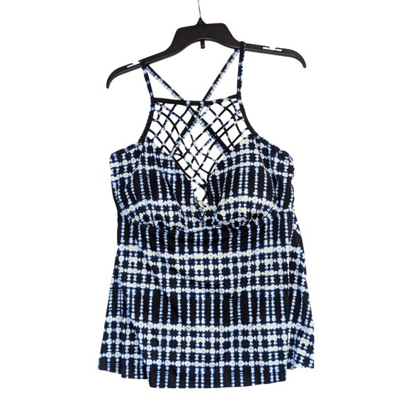 Womens APT.9 Blue & White Printed Tankini Top With Lattice Back Straps