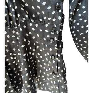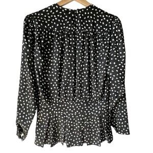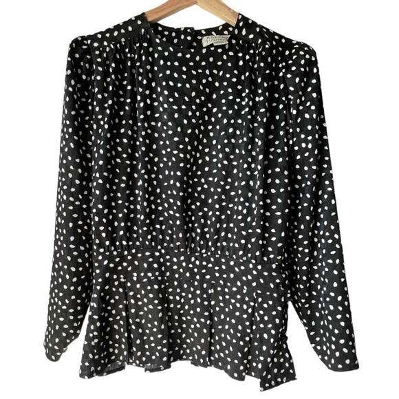 Women's ARGENTI BOUTIQUE blouse print point top black & white casual Vintage long sleeve size button 10.