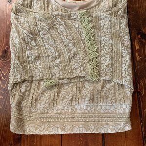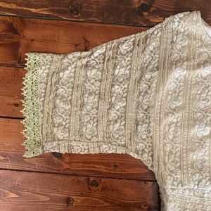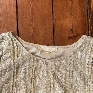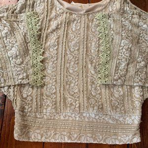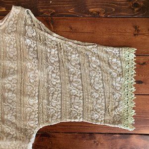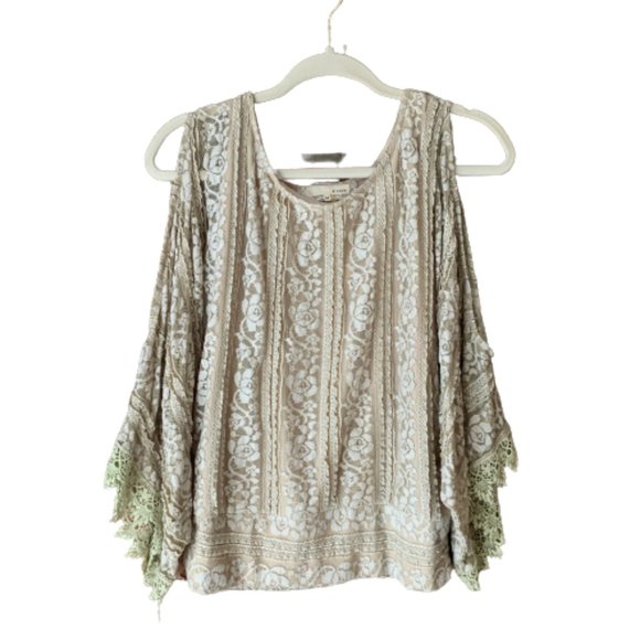 Women's A'Reve Soft Lace Open Cold Shoulder Batwing Sleeve Medium Blouse GUC