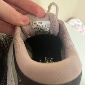 These are a women’s size 6 gel excite 7 running shoes. They are preowned but good condition. The color is called graphite grey and watershed rose.