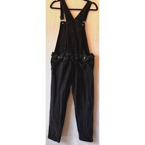 Womens ASOS Maternity Overalls Sz 6 US/UK 10 Black Denim Cotton Blend Cropped Side Straps