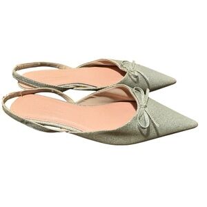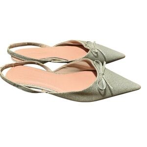 Women’s ASOS Silver Slingback Bow Flats Glitter Size 5