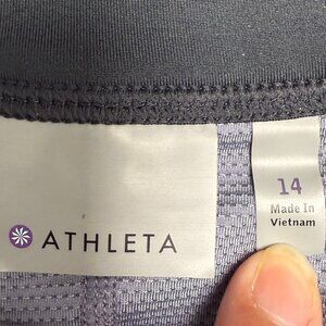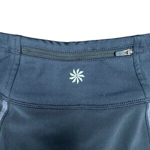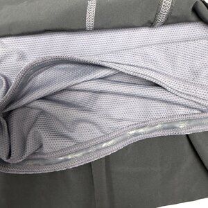 * STYLE- Great little ATHLETA athletic skort. Dark charcoal with lighter gray stitching. Quick dry 4-way stretch outer with mesh shorts underneath. Shorts have a rubber griping hem to hold in place. Cute ruffle and back zipper pocket. Inside drawstring to adjust fit. Stretchy flexible material.