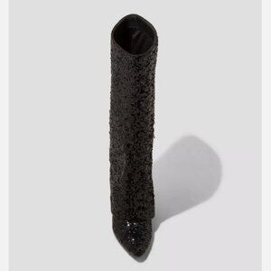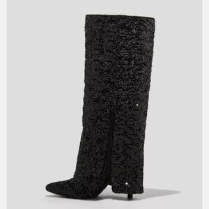 Women's Abba Sequin Foldover Heeled Boots - A New Day Black 9.5
