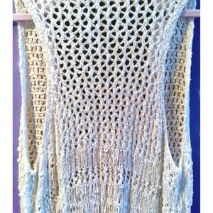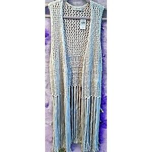 Women's Abercrombie & Fitch Boho Cream Crochet Fringed Long Vest Size M/L New