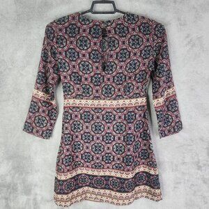 Womens Abercrombie & Fitch Retro Print Dress 3/4 Sleeve Round Neck Size XS