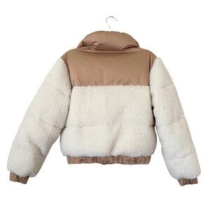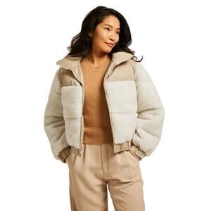 Women's Abercrombie & Fitch Ultra Faux Fur Color Block Mini Puffer Jacket -Small