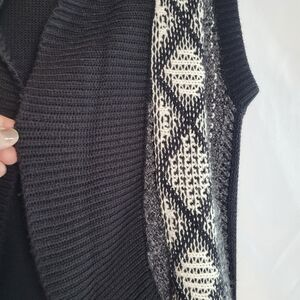 Women's Abito Black White Sweater Vest Open Front Size Small Grannycore Sweater