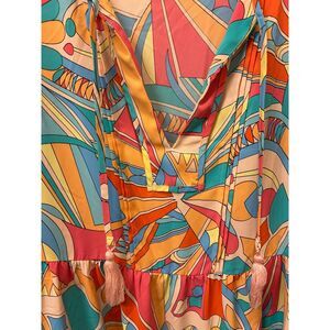 Women's Abstract Geometric Print Tassel Tie Dress | XL