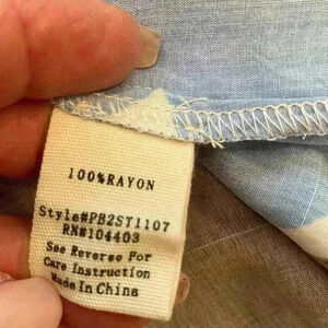 Pretty Perch blouse by Blu Pepper. Colorful peasant style top with abstract print, colors of brown gold, blue and pink. Measurements are in the pictures.