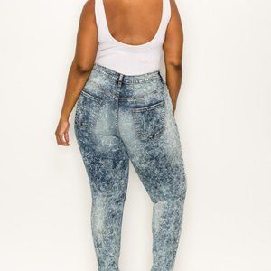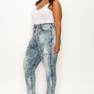 The Plus Size Wash Out Jeans features high rise acid wash skinny jeans with a form fitting sexy appeal.
