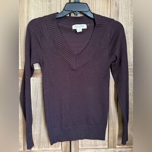 Embrace timeless style with the Active Basic V-Neck Sweater in a rich brown hue. This fitted sweater features a ribbed knit detailing around the neckline, offering a classic and versatile look. Crafted from medium-weight knit material, it's perfect for cooler weather.\