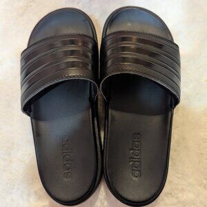 Women's Adidas Adilette Platform slide size 7. Excellent pre-owned condition. Purchased for myself, I should have listened to the reviews and sized down. I wore them a few times and they super cushiony but they are just a size too big.
