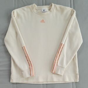 Women's adidas essential 3 stripes cream sweatshirt. Features subtle logo detail. Ideal for casual wear. Gently worn, good condition.