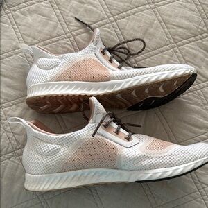 Step into comfort and style with these sneakers. Featuring a sleek white design with peachy tan accents, these shoes are perfect for any casual outing. Enjoy the perfect blend of fashion and function.