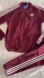 Adidas tracksuit in maroon with classic white accents. Ideal for everyday comfort.