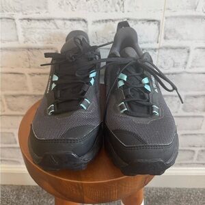 Get ready to rock these Adidas hiking sneakers!!! Terrex A4X. Gore-Tex black and gray. They are in very good preowned condition. Minimal wear. No stains/tears. Size 7.