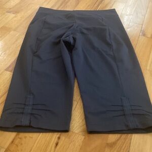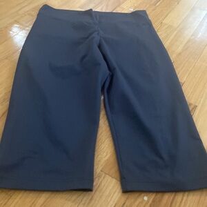 Dark grey Capri leggings. Design on back bottom hem. Waist 15” Rise 11.5” Inseam 15” CS
