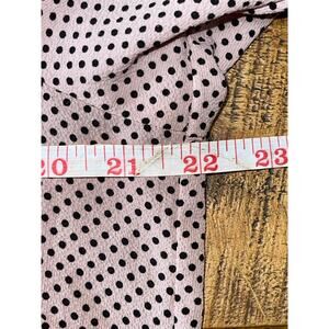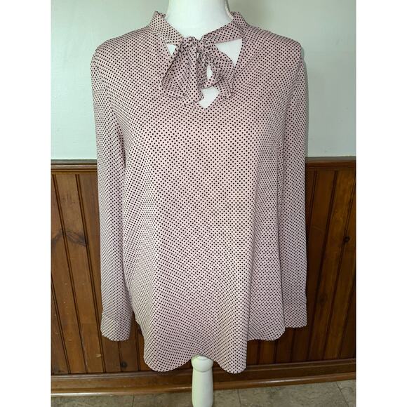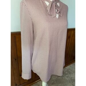 Womens Adrianna Papell Blush Pink Black Polkda Dot Tie Neck Long Sleeve Blouse M