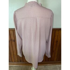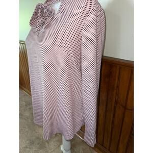 This blouse is in excellent pre-loved condition! No rips or stains. This is a long sleeve blouse with cute polka dot detailing all over! The front also has a neck tie detail that adds to it! It is long sleeves with a button on the cuff. Measurements in photos. This is a womens size medium!