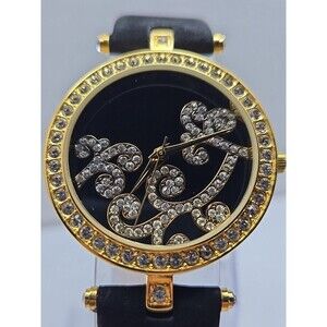 Womens Adrienne Couture Collection Gold Tone Crystal Dial Watch New Battery