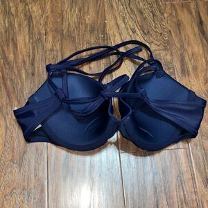 Women’s Aerie Navy Blue perkier push-up strappy tie back bikini top beach pool