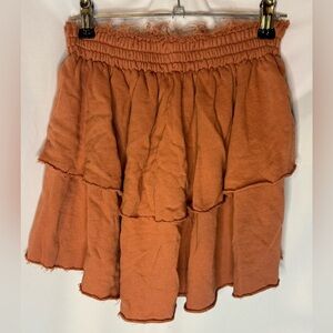 This vibrant orange mini skirt from Aerie features a playful bubble style with smocked detailing and tiered layers. Perfect for casual outings or resort wear, its lightweight fabric ensures comfort and a flowy silhouette.