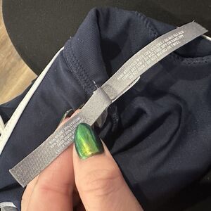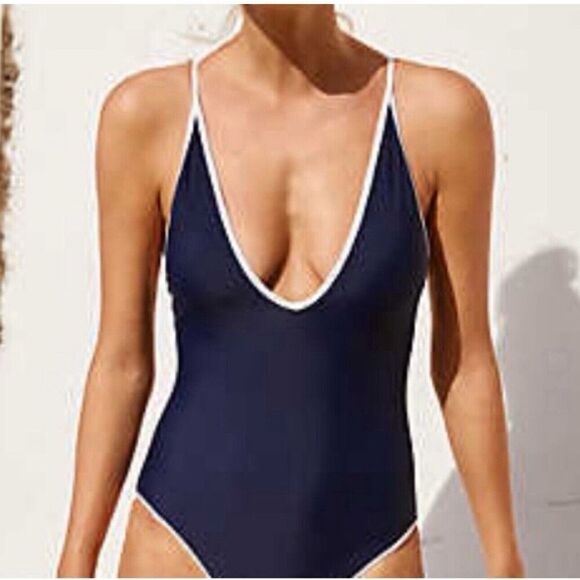 Women’s Aerie Plunge One Piece Swimsuit Navy Blue White Contrast Piping Size XL