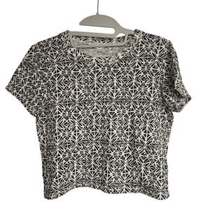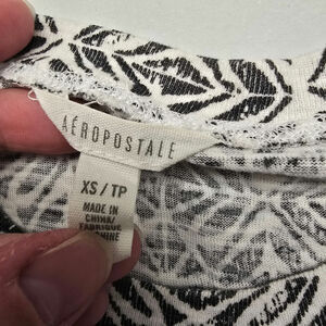 Excellent condition, women's Aeropostale black and white patterned, cropped tee. This material is lightweight and does stretch some.