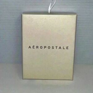 Aeropostale Cubic Zirconia Sagittarius earring set. The set includes three pairs of earrings: two star-shaped studs, two small crystal-studded studs, and two Sagittarius constellation-shaped earrings with multicolored cubic zirconias. All earrings have silver-toned metal settings. The earrings are packaged in a beige cardboard gift box with the Aeropostale logo. The box shows minor shelf wear. Dimensions are approximately 4x3x1 inches. Made in China. Style number 0946, Department 7308.