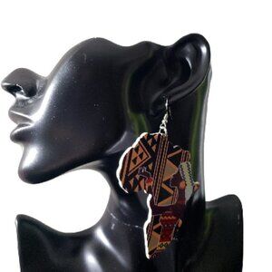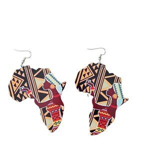 Womens Africa Map Geometric Painted African American Retro Wooden Hook Earrings