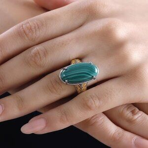 Women's African Green Malachite Solitaire Ring in 18K YG Plated and Platinum Bond Size 8