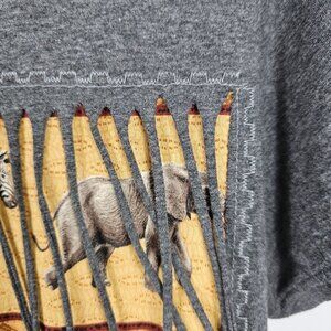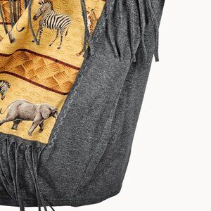 Womens African Zoo Safari Print Boho Fringed Tassel Graphic Tee Dark Gray LG