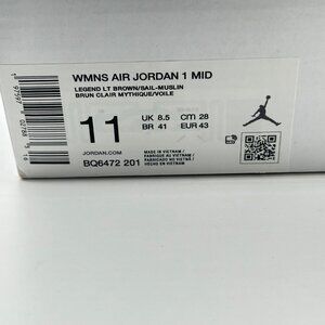 - Item: Air Jordan 1 Mid Legend Light Brown - Size: Women’s U.S.: 11 / Men's U.S.: 9.5 - Item code: BQ6472-201 - Condition: 100% New and in perfect condition - They will come with original box No Lid - 100% Authentic - Offers welcome - Will ship in one business day Condition: New With Tags Original Box No Lid Features: • Vietnam Size: Womens Women 11 / Men 9.5 Condition: New With Box