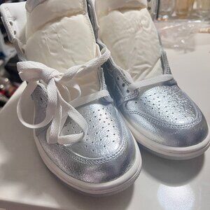 These brand-new Women's Air Jordan 1 Retro OG in Chrome are hot!🔥 Brand new, size 6.5, never worn - totally authentic with proof of purchase provided. Extra set of laces come in the box. These are a full statement! BEAUTIFUL!