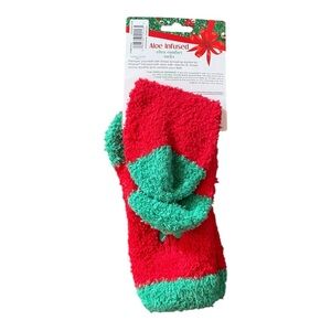 Women's Airplus Aloe Infused Socks Red Christmas Ornament Fuzzy Winter Warm NEW