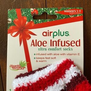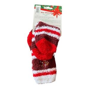 Women's Airplus Aloe Infused Socks Red Striped HOLLY JOLLY Fuzzy Winter Warm NEW