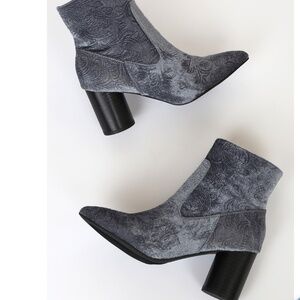 Women’s Alana by Matisse Gray Floral Jacquard Velvet Ankle Boots sz 7