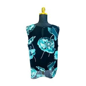 Add a touch of elegance to your wardrobe with this Alfani Floral Sleeveless Blouse. Featuring a striking teal floral print against a black background, this flowy top offers a polished, feminine look. Made from a lightweight polyester and spandex blend, it's perfect for work, brunch, or summer gatherings. The sleeveless design keeps it cool and breezy, while the semi-sheer overlay adds a delicate touch.